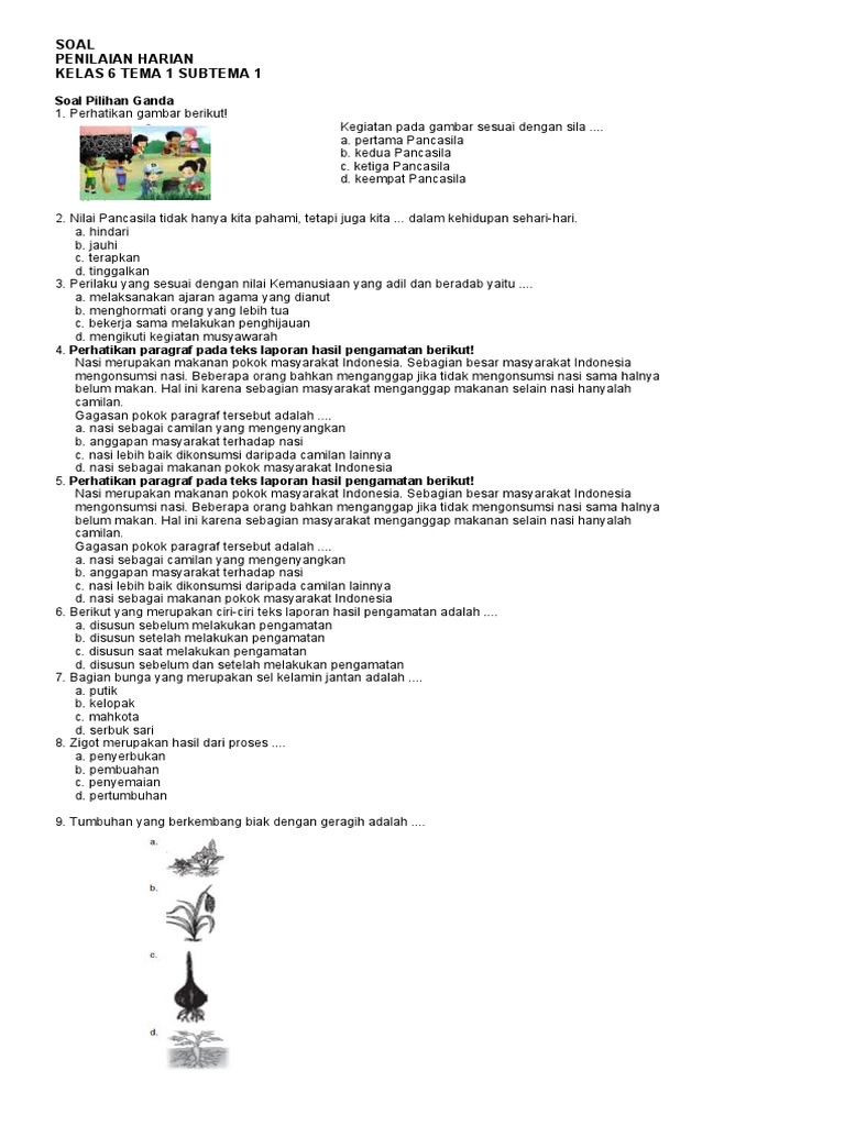 Soal harian yang efektif untuk Subtema 1 harus bervariasi dan mencakup berbagai jenis pertanyaan untuk menguji pemahaman siswa dari berbagai sudut pandang. Berikut adalah beberapa tipe soal yang umum digunakan beserta contohnya: