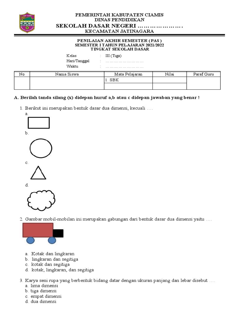 Seni Budaya dan Keterampilan (SBK) adalah mata pelajaran yang kaya dan beragam, dirancang untuk mengembangkan kreativitas, apresiasi seni, dan keterampilan praktis pada siswa. Di kelas 3 semester 1, siswa diperkenalkan dengan berbagai konsep dasar seni dan budaya melalui kegiatan yang menyenangkan dan interaktif. Artikel ini akan mengupas tuntas berbagai aspek soal SBK kelas 3 semester 1, memberikan panduan lengkap bagi siswa untuk mempersiapkan diri dan bagi guru untuk merancang pembelajaran yang efektif.